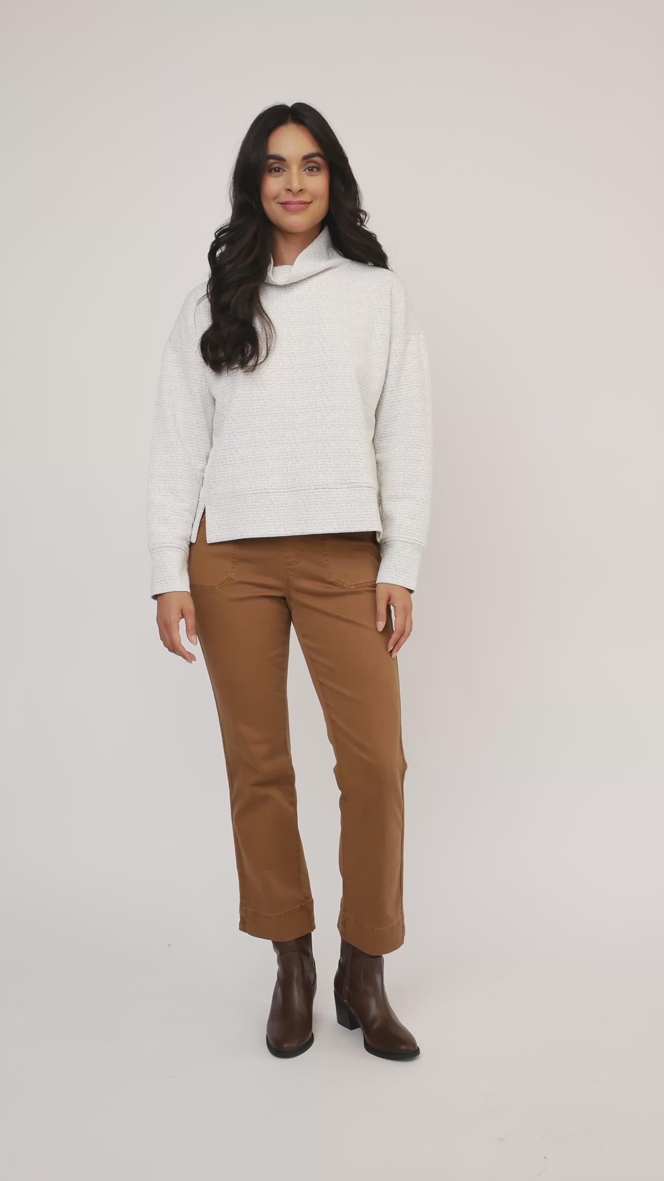 This puckered knit top by Tribal features long sleeves and a cozy funnel neckline, crafted from soft knit fabric for all-day comfort. Available in both Petite and Regular fits, it’s designed to flatter every shape while adding a fun, textured twist to your look.