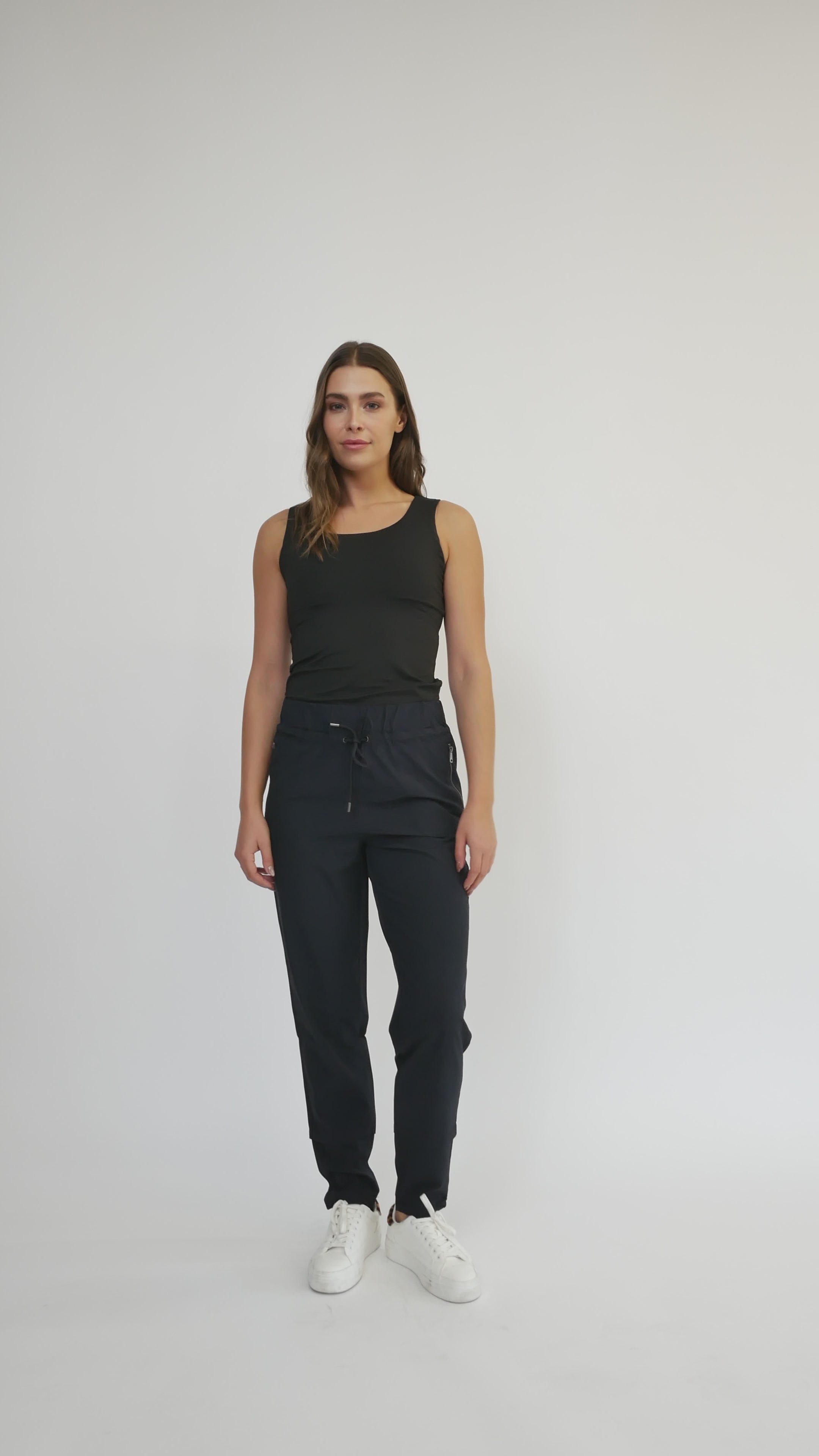 Enjoy comfort and style in these pull-on pants by Charlie B. The adjustable waistband with a drawcord lets you find the perfect fit, while side pockets keep essentials close. Stretch fabric moves with you, and cuff details add a fun, sporty touch to your look. Perfect for casual days!