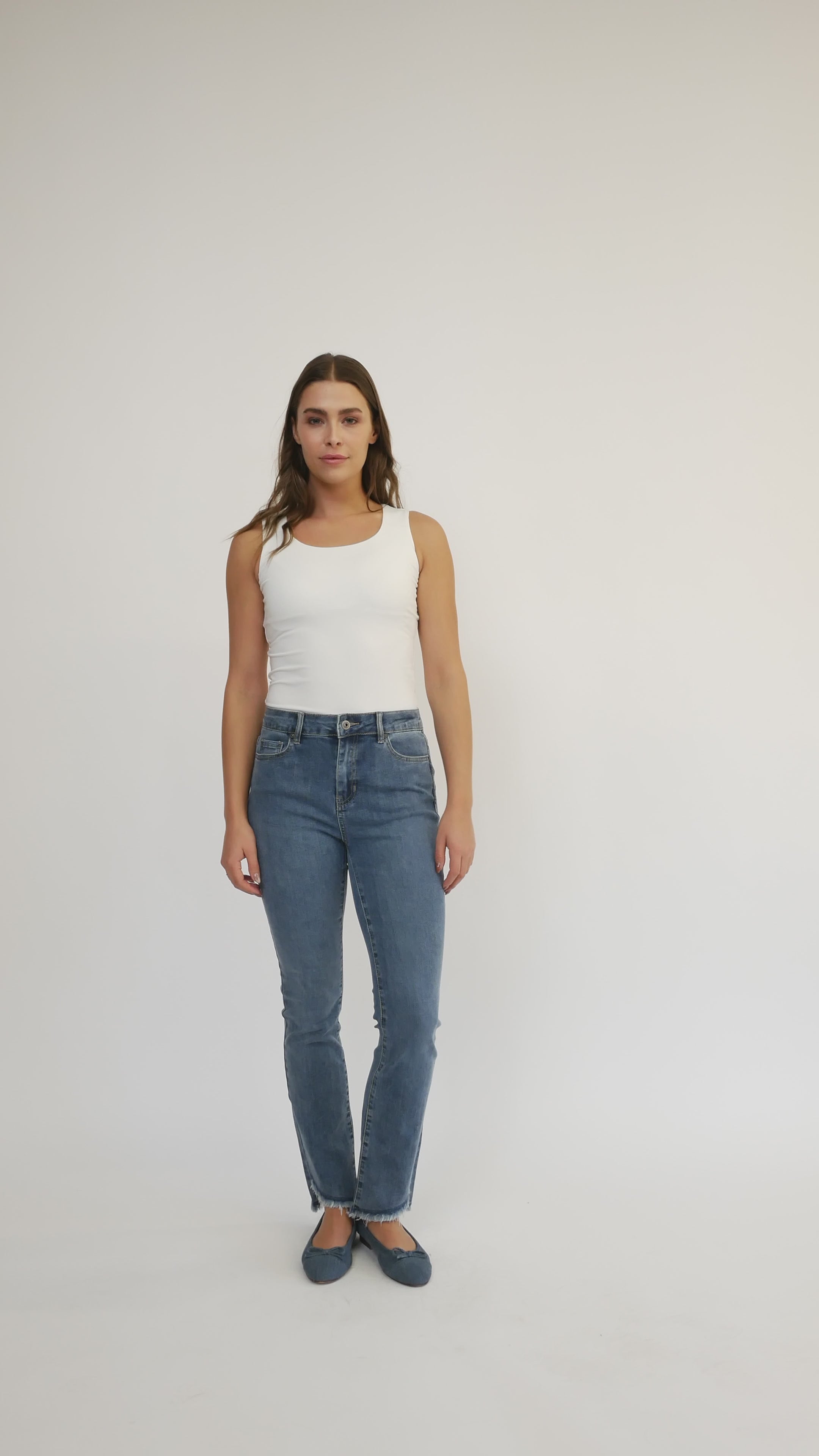 Step out in style with these slim leg jeans by Charlie B. Featuring a zip and button closure, classic five-pocket design, and handy belt loops, they mix comfort with functionality. The charming hem detail adds a flirty touch, making these denim essentials perfect for turning heads wherever you go.