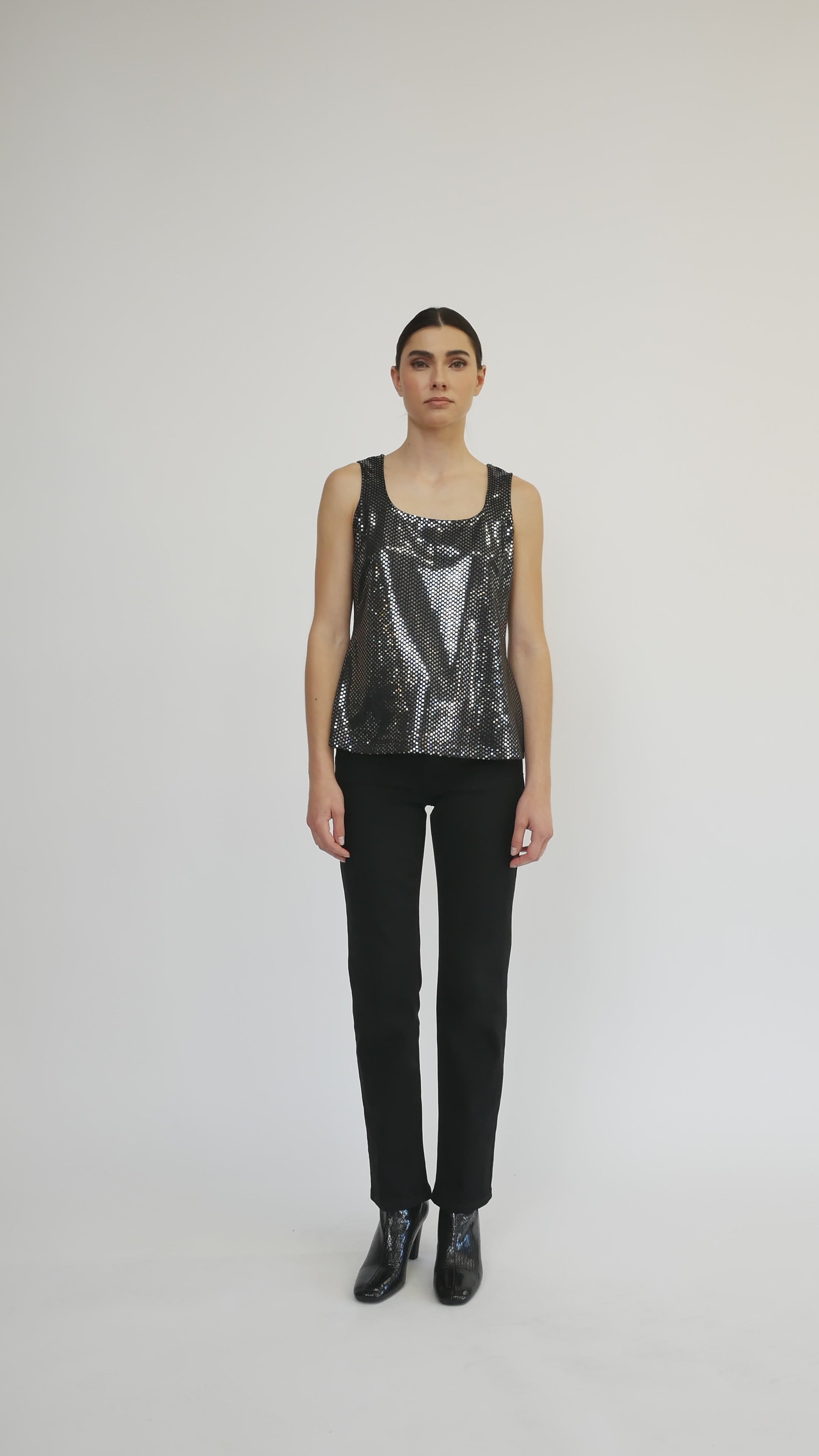 Add a touch of sparkle to your wardrobe with this square neck cami. Sleeveless and crafted from comfy knit fabric, it features dazzling sequins that catch the light perfectly. Made exclusively in Canada for Cazza Petite & Zacks, this top is ready to brighten any outfit with effortless charm.