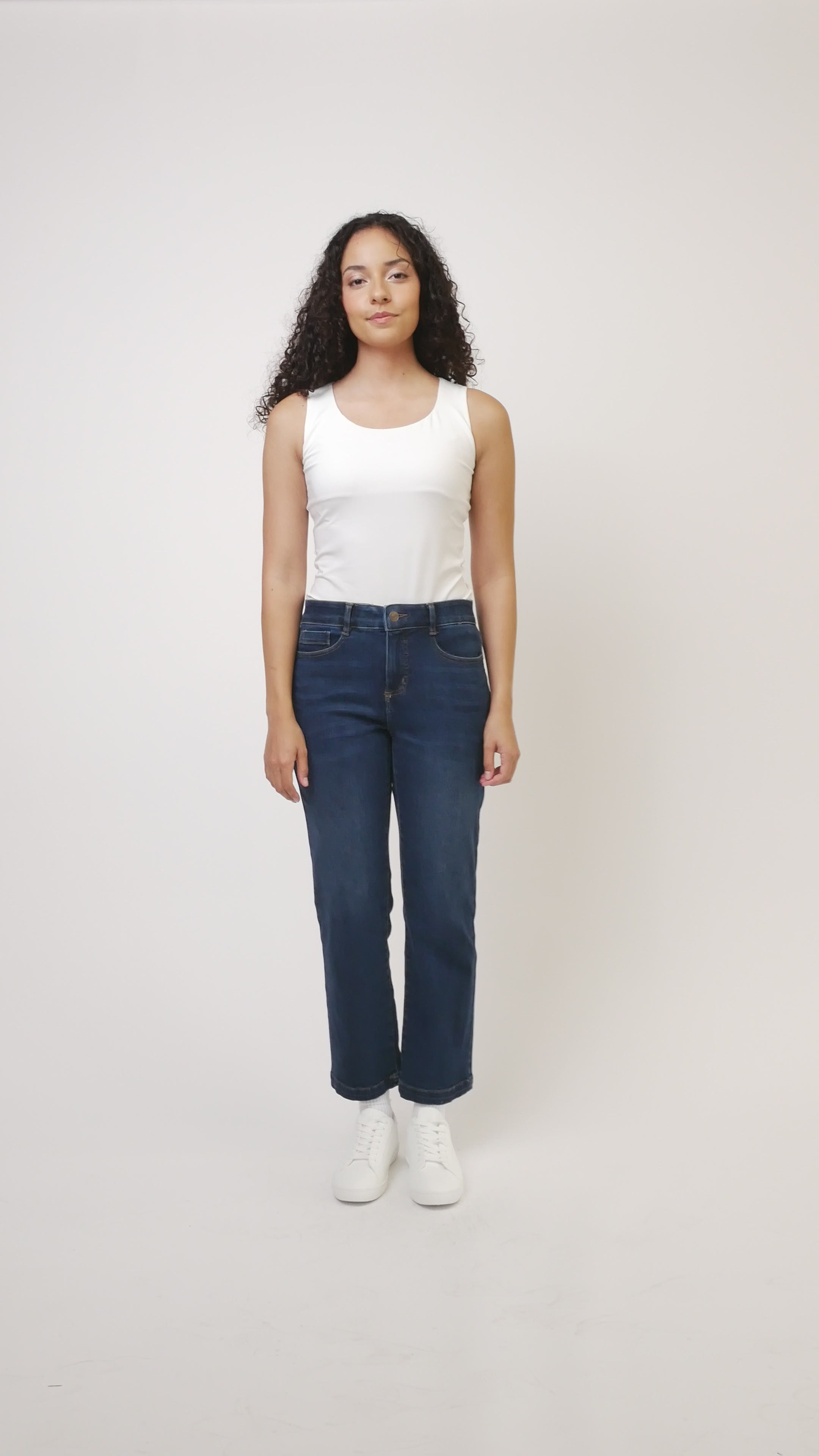 Step into effortless style with these straight leg crop jeans by Tribal. Featuring a classic zip and button front closure, five handy pockets, and belt loops for accessorizing, these jeans blend comfort and function. Crafted from a soft cotton blend, they offer a flattering fit that’s perfect for everyday looks.